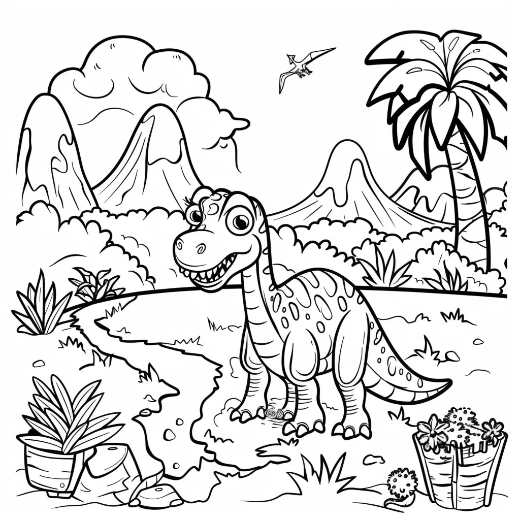 125 colouring pages depicting cartoon style Dinosaurs and Prehistoric Life