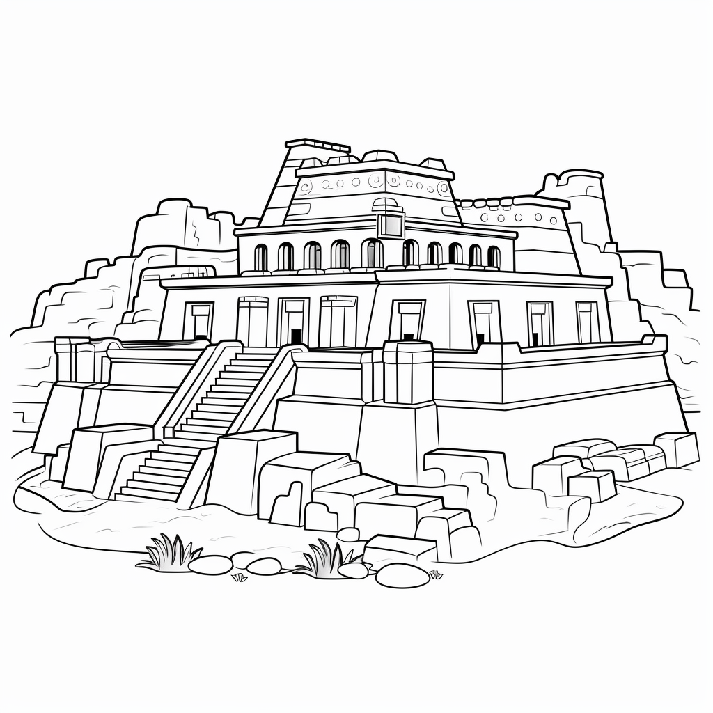 125 colouring pages depicting Ancient Civilisations, the people and their Buildings