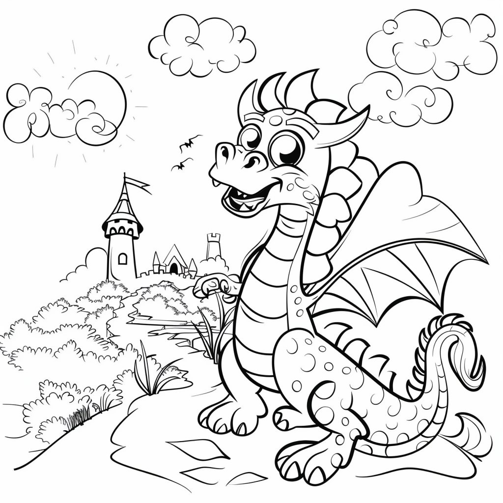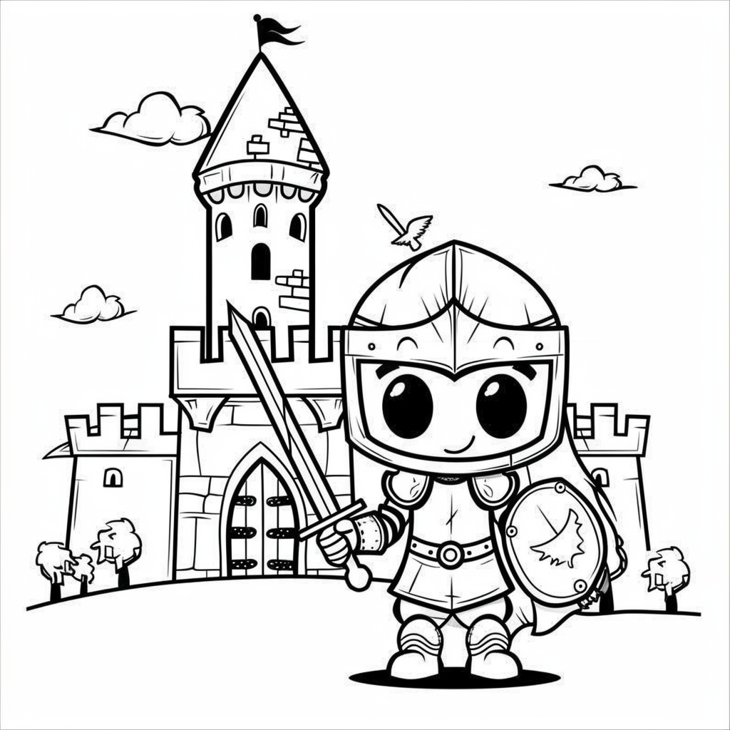 125 Colouring pages depicting Knights, Princesses and Dragons