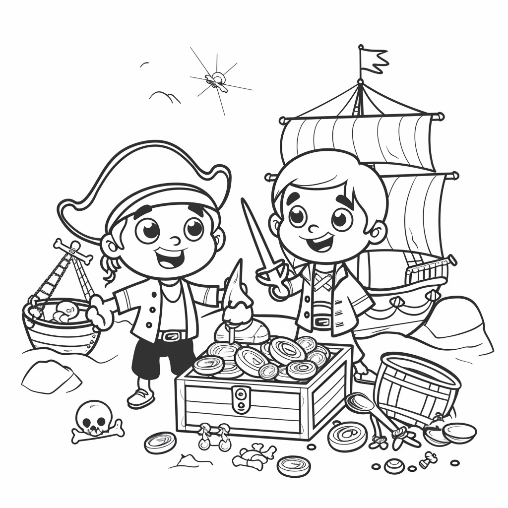 125 colouring pages depicting cartoon style Pirates and Treasure maps